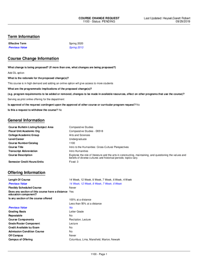 Get the free Comp Stds 1100 Course Change.pdf - ASCnet