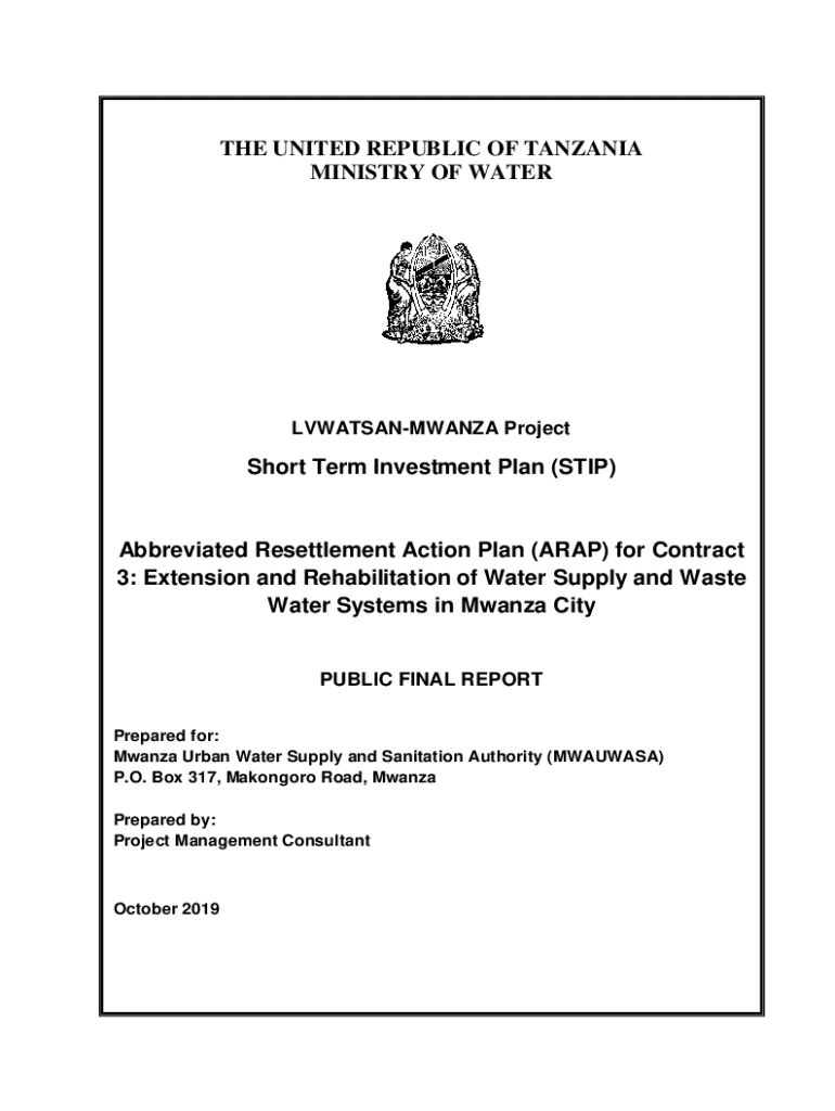 THE UNITED REPUBLIC OF TANZANIA MINISTRY OF WATERLVWATSANMWANZA Project Short Term Investment Plan (STOP)Abbreviated Resettlement Action Plan (ARAB) for Contract 3: Extension and Rehabilitation of