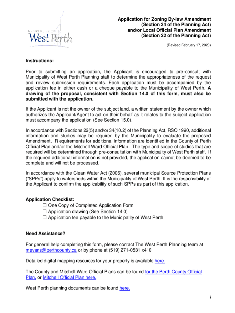 Application for Zoning Bylaw Amendment (Section 34 of the Planning Act) and/or Local Official Plan Amendment (Section 22 of the Planning Act) (Revised February 17, 2023)Instructions: Prior to submitting