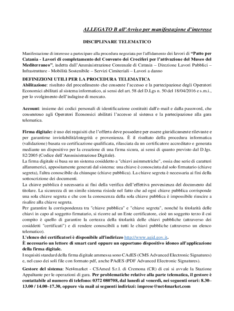 Manifestation DI interest a participated alley procedure negotiate per l\'affidamento DEI favor DI Patton Catania Favor DI