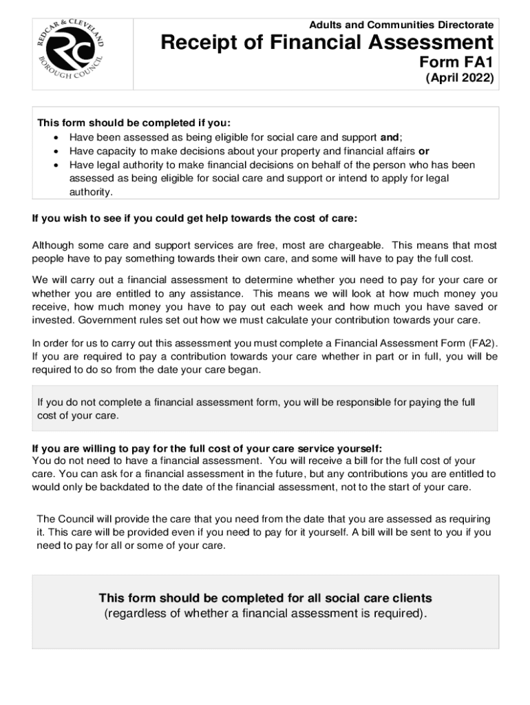 Adults and Communities DirectorateReceipt of Financial Assessment