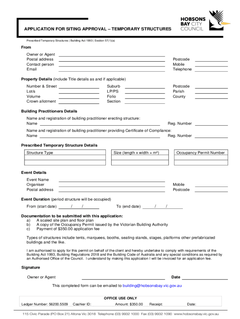 APPLICATION FOR SITING APPROVAL TEMPORARY STRUCTURES