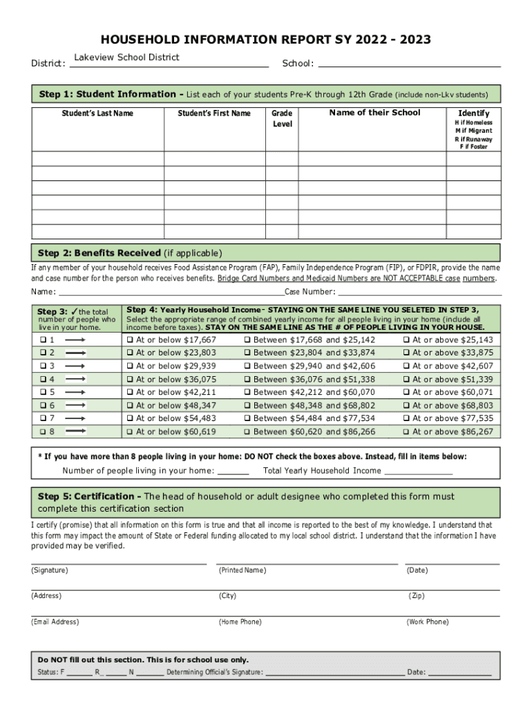 HOUSEHOLD INFORMATION REPORT SY 2022 2023