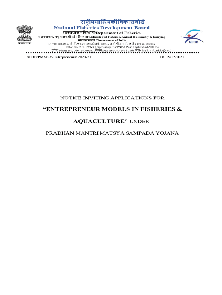 National Fisheries Development Board /Department of Fisheries, /Ministry of Fisheries, Animal Husbandry & Dairying /Government of India 235, ..., ...... 500052 Pillar No: 235, PVR Expressway,