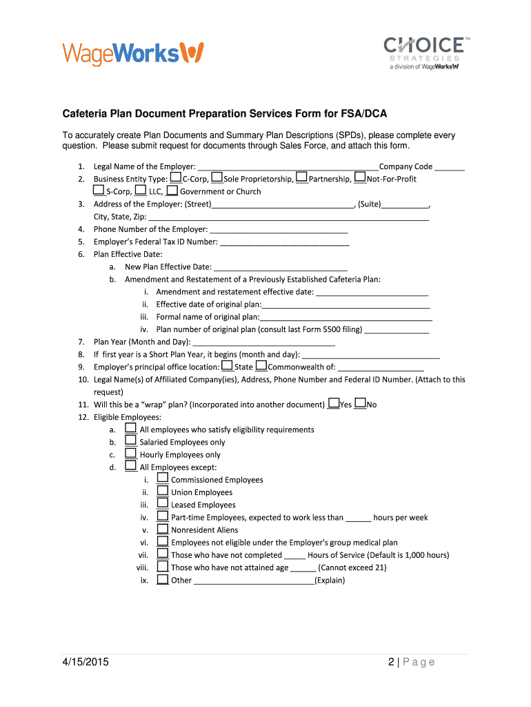 FSA/DCA Cafeteria Plan Document Preparation Only Application: