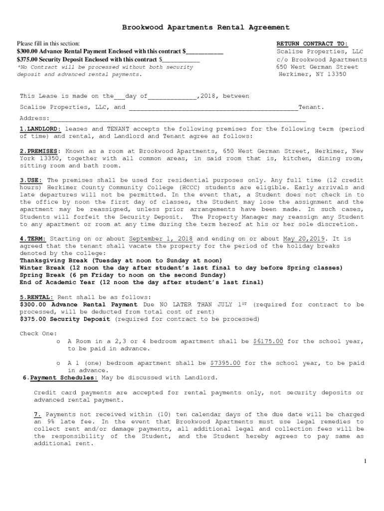 Brook wood Apartments Rental Agreement Please fill in this section: $300.00 Advance Rental Payment Enclosed with this contract $___ $375.00 Security Deposit Enclosed with this contract $___ *No Contract