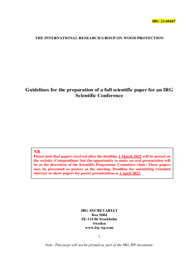 IRG 2260447THE INTERNATIONAL RESEARCH GROUP ON WOOD PROTECTIONGuidelines for the preparation of a full scientific paper for an IRG Scientific Conference NB Please note that papers received after the
