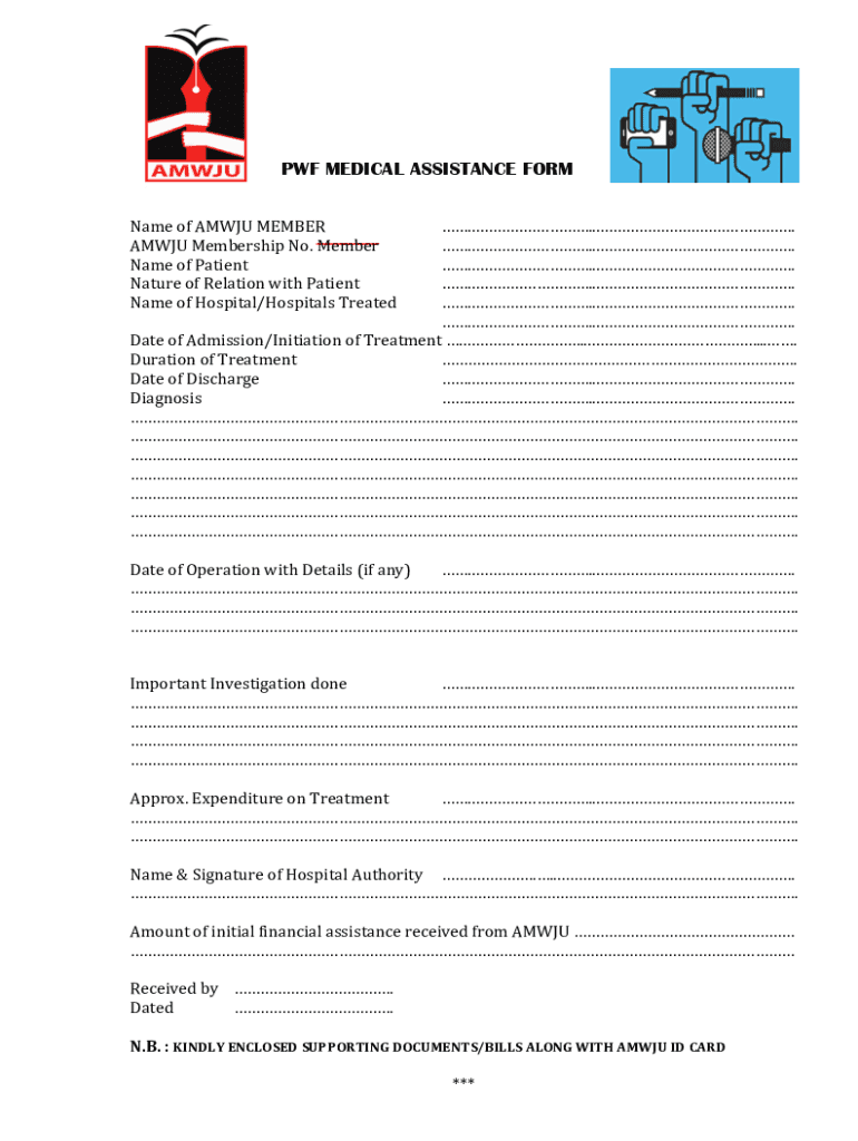 PWF MEDICAL ASSISTANCE Forename of AMW JU MEMBER....AMW JU Membership No. Member.... Name of Patient.... Nature of Relation with Patient.... Name of Hospital/Hospitals Treated.