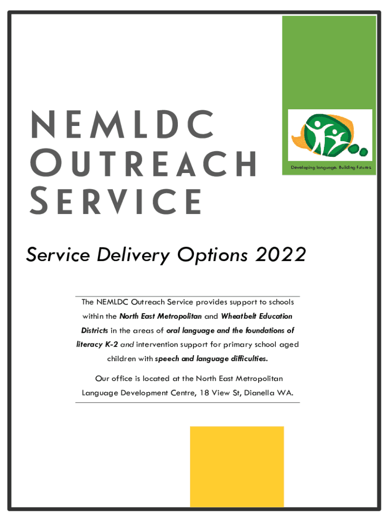 NEM LDC Outreach ServiceDeveloping language. Building futures. Service Delivery Options 2022 The NEM LDC Outreach Service provides support to schools within the North East Metropolitan and Wheat belt
