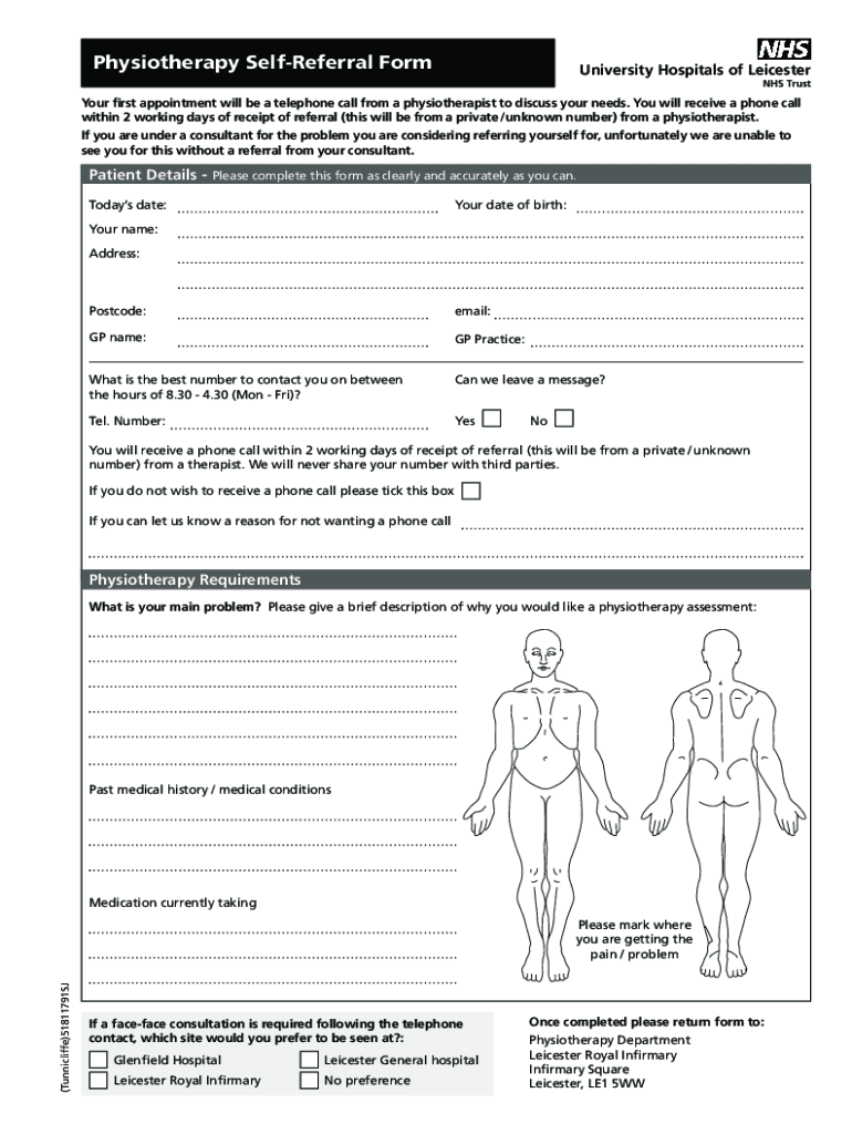 Get the free Physiotherapy Self-Referral Form - Leicester's Hospitals