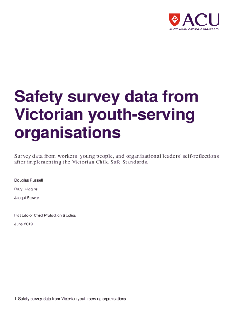 Safety survey data from Victorian youth serving organizations Survey data from workers, young people, and organizational leaders self reflections after implementing the Victorian Child Safe Standards.