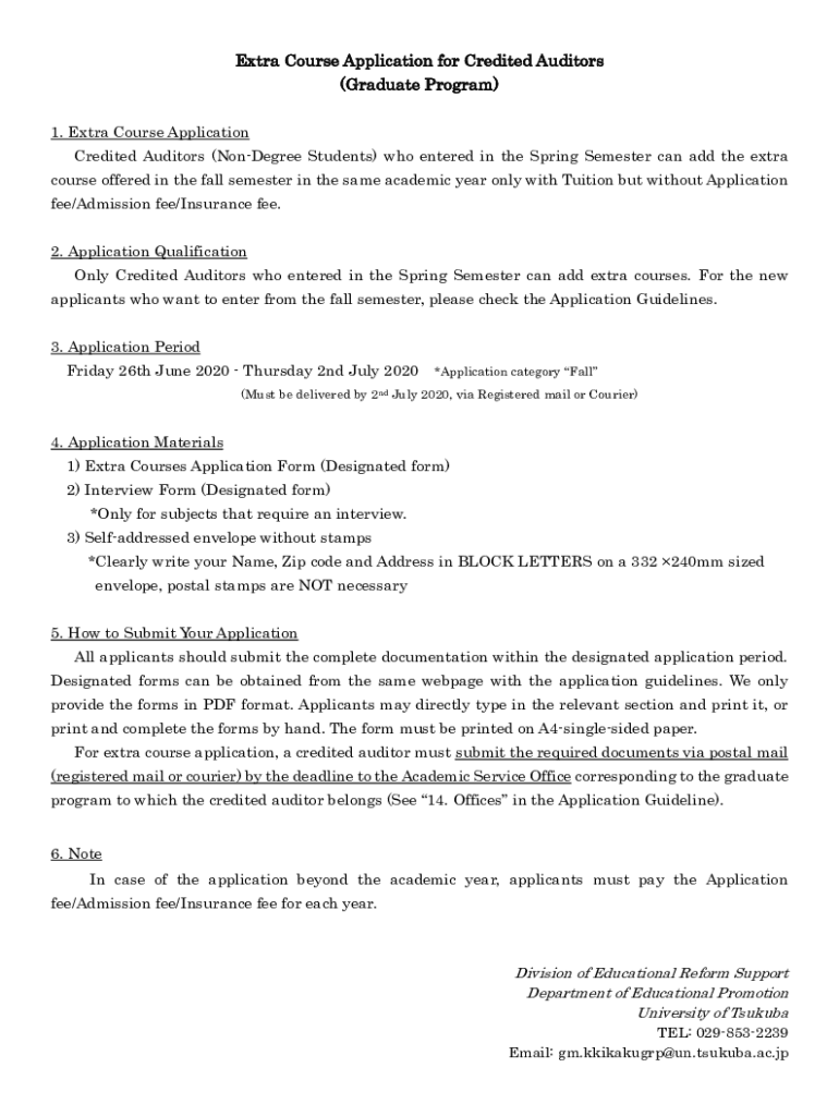 Extra Course Application for Credited Auditors (Graduate Program) 1. Extra Course Application Credited Auditors (NonDegree Students) who entered the Spring Semester can add the extra course offered