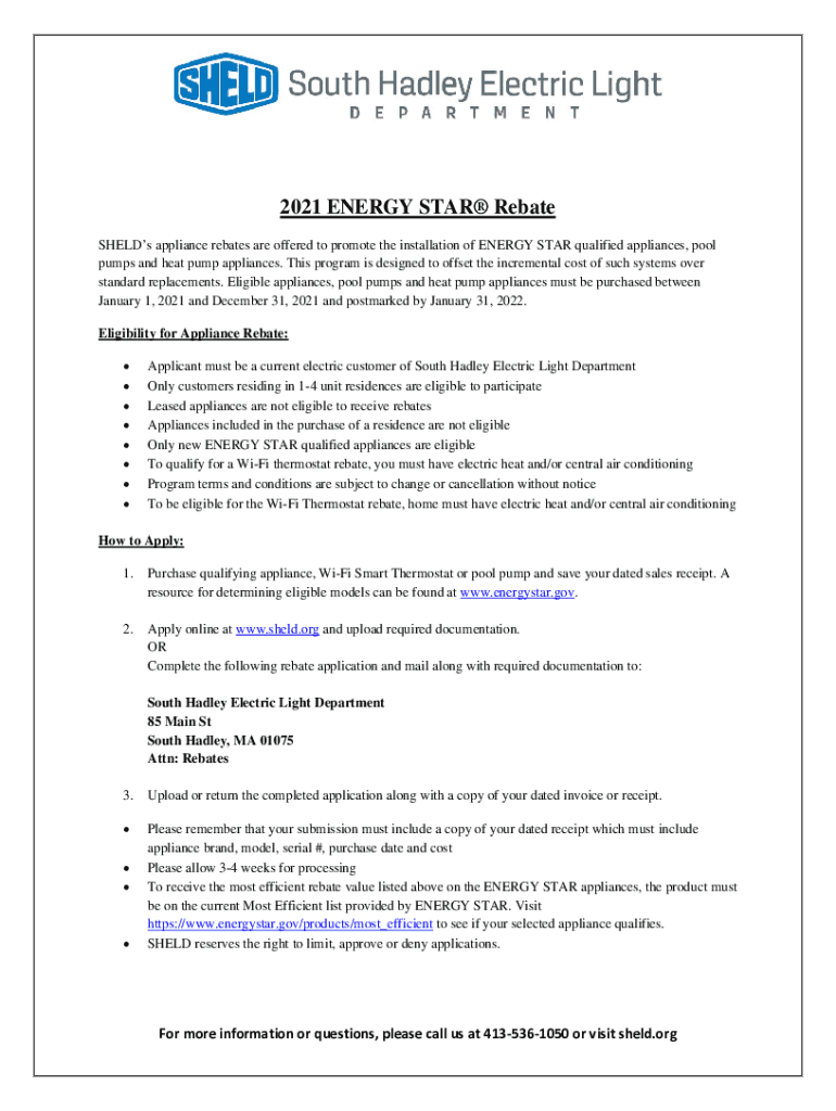 2021 ENERGY STAR Rebate Shells appliance rebates are offered to promote the installation of ENERGY STAR qualified appliances, pool pumps and heat pump appliances. This program is designed to offset