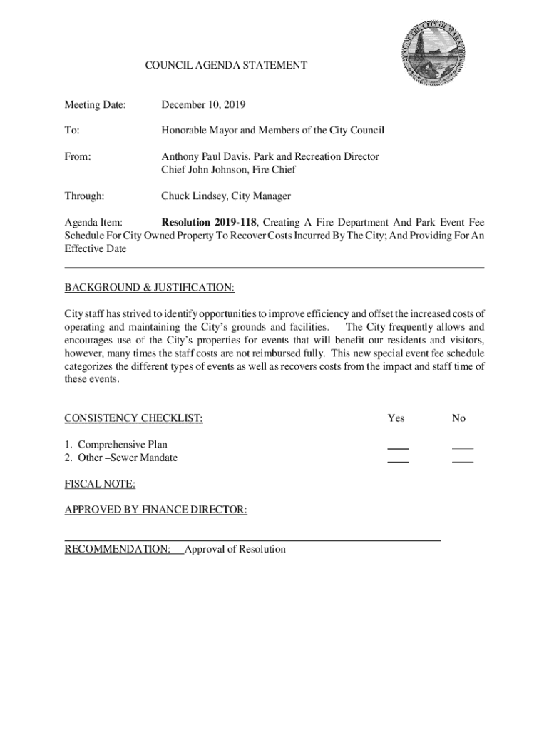 COUNCIL AGENDA STATEMENTMeeting Date:December 10, 2019To:Honorable Mayor and Members of the City Councilor:Anthony Paul Davis, Park and Recreation Director