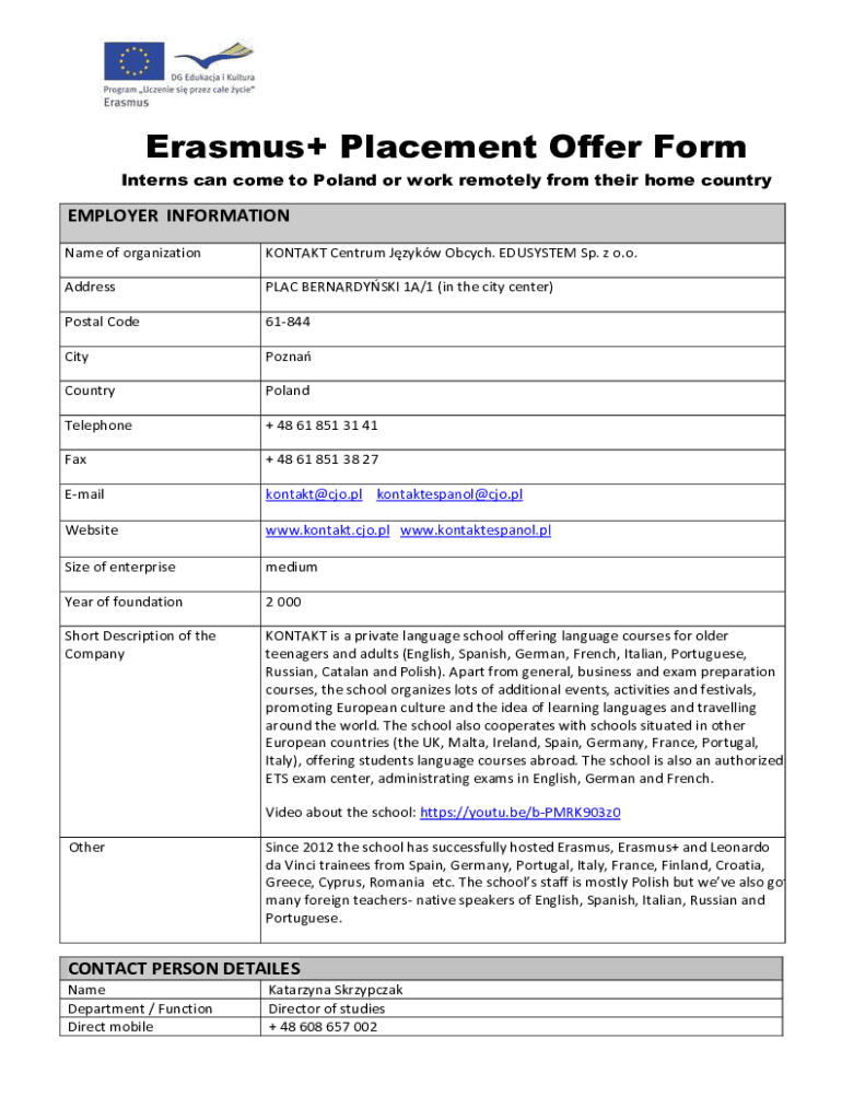 Erasmus+ Placement Offer Form