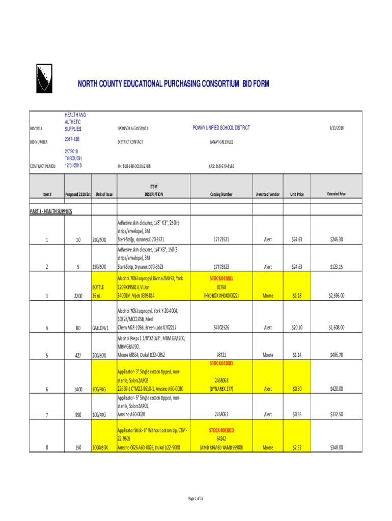 NORTH COUNTY EDUCATIONAL PURCHASING CONSORTIUM BID FORMHEALTH AND