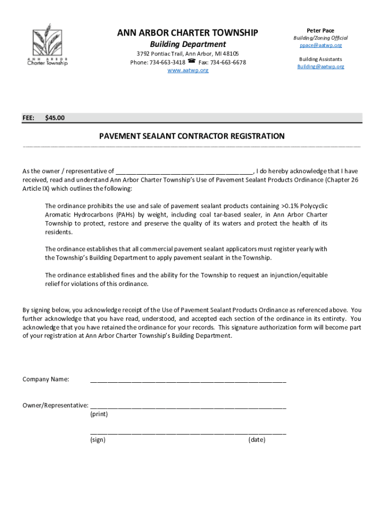 ANN ARBOR CHARTER TOWNSHIP Building Department 3792 Pontiac Trail, Ann Arbor, MI 48105 Phone: 7346633418 Fax: 7346636678 www.aatwp.orgFEE:Peter Pace Building/Zoning Official ppace@aatwp.org Building