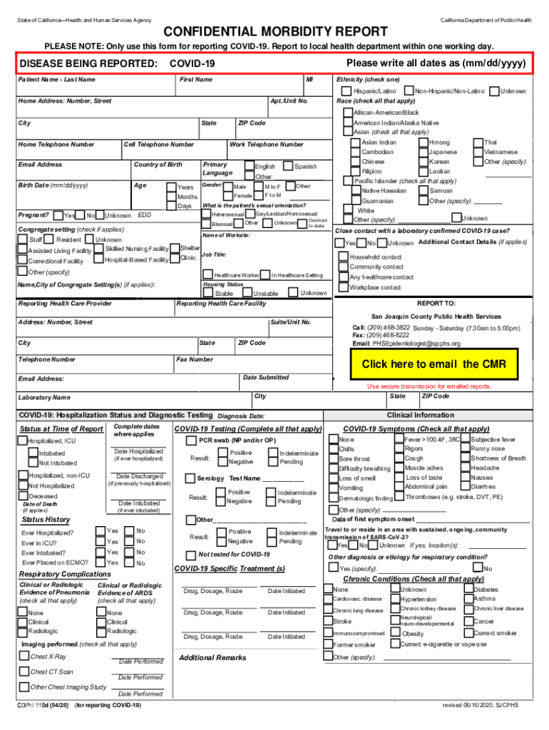 State of CaliforniaHealth and Human Services Agency California Department of Public HealthCONFIDENTIAL MORBIDITY REPORT