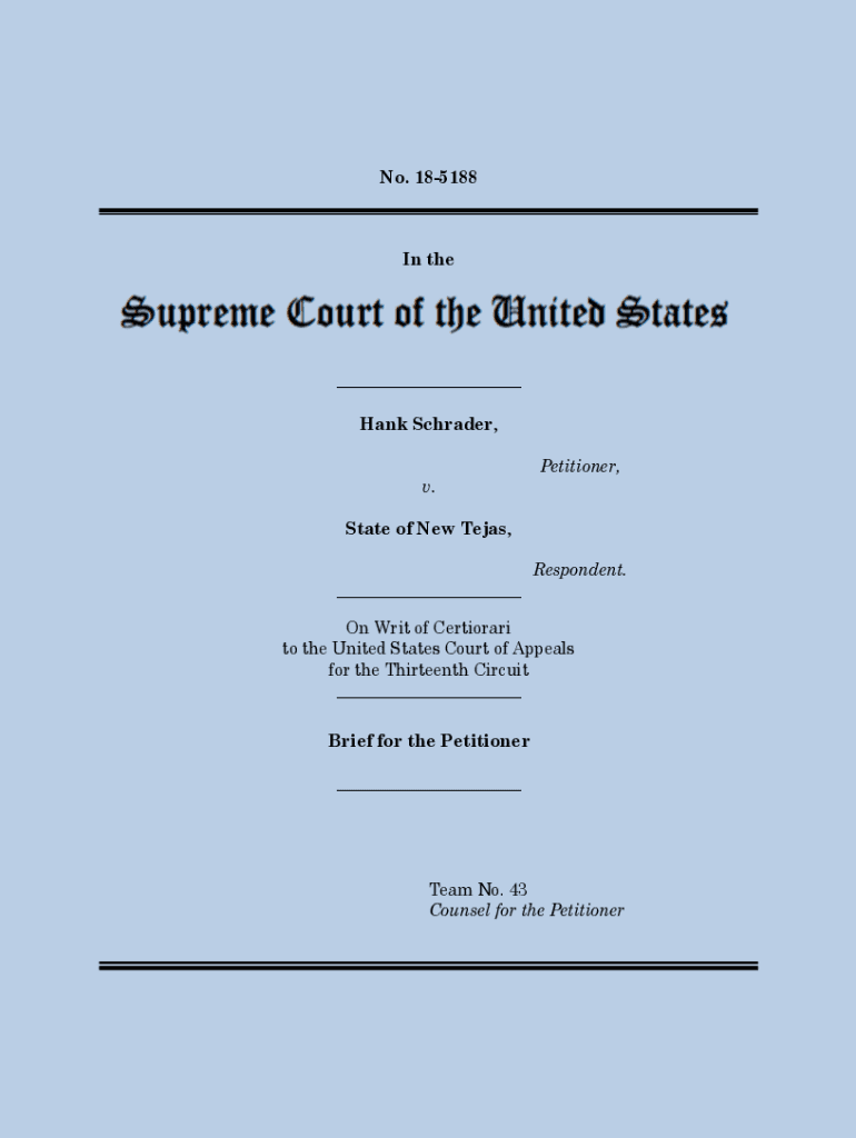No. 185188In the___ Hank Schrader, Petitioner, v. State of New Texas, ___Respondent. On Writ of Certiorari to the United States Court of Appeals for the Thirteenth Circuit ___ Brief for the Petitioner