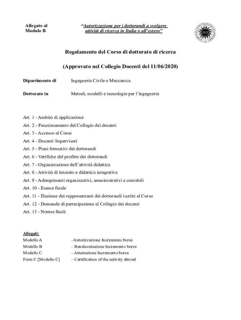 activity DI ricer ca in Italia o allesteroRegolamento Del Torso DI doctorate DI ricer ca