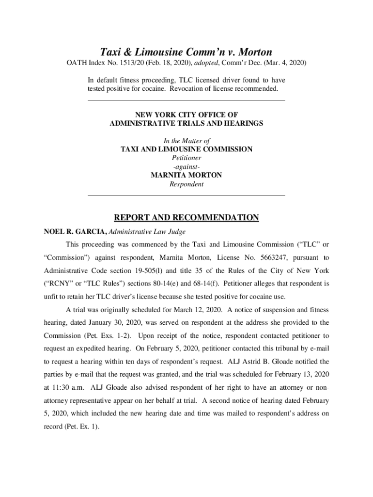 Get the free Taxi & Limousine Comm'n v. Morton - archive citylaw