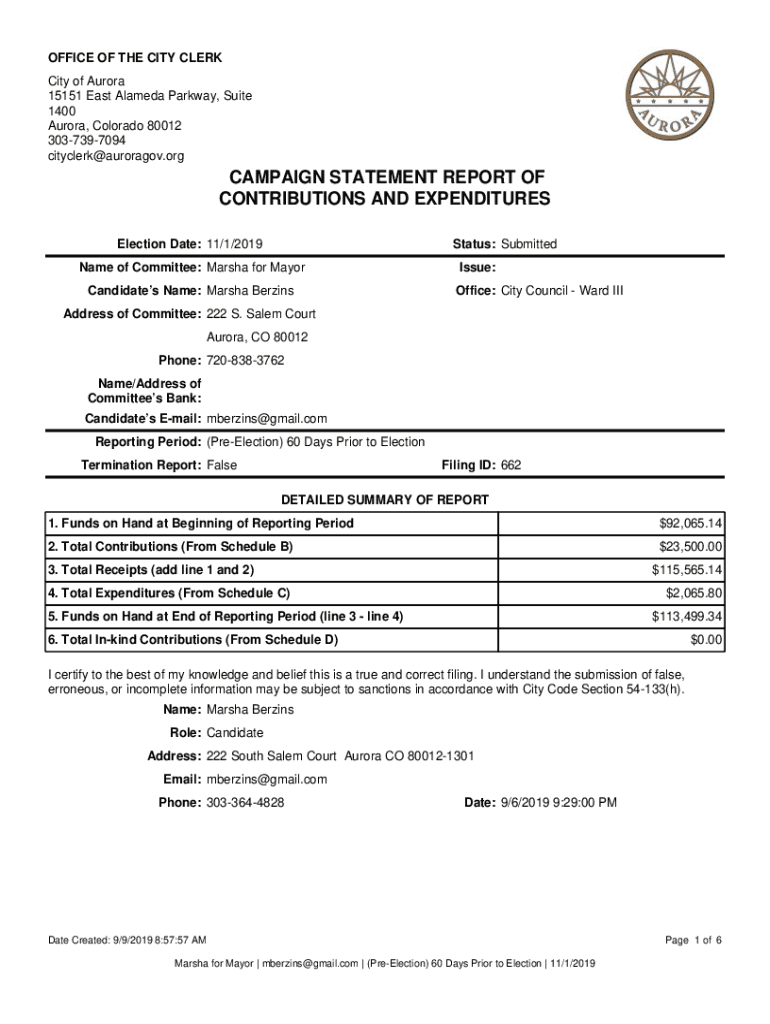 cityclerk@auroragov.orgCAMPAIGN STATEMENT REPORT OF