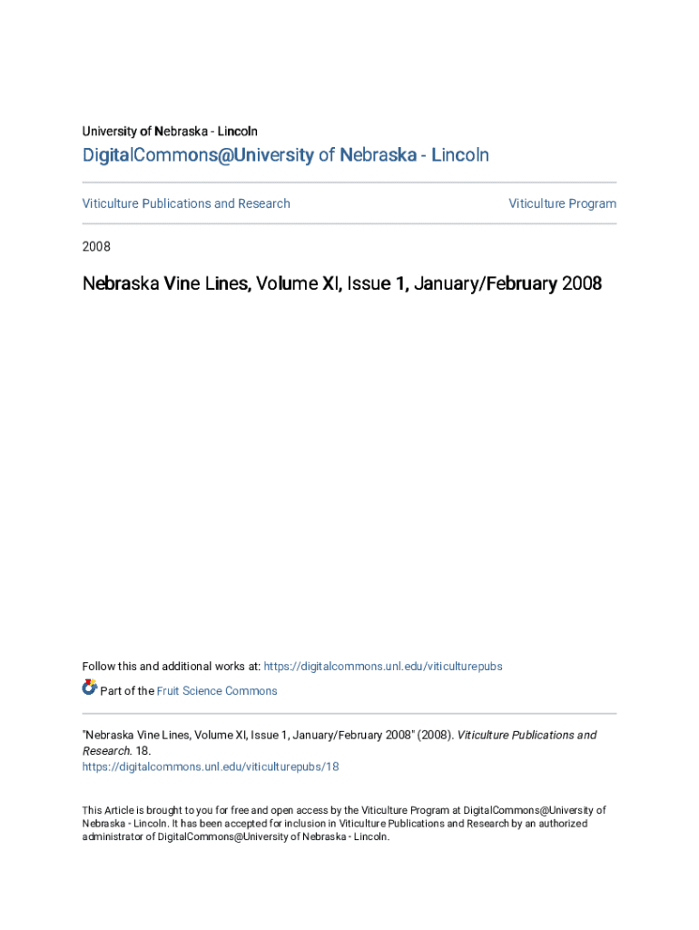 Get the free Nebraska Vine Lines, Volume XI, Issue 4, August/September ... - digitalcommons unl