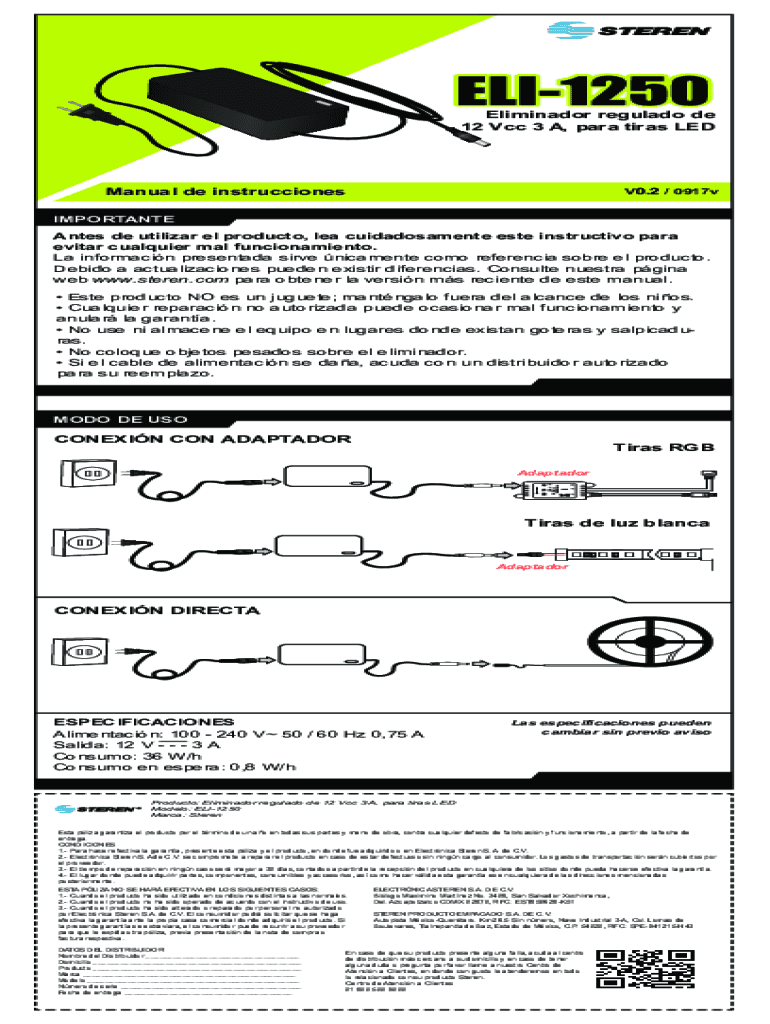 El eliminador regulado de 12 debe ser completado siguiendo las instrucciones del fabricante y verificando que cumple con las normativas vigentes.