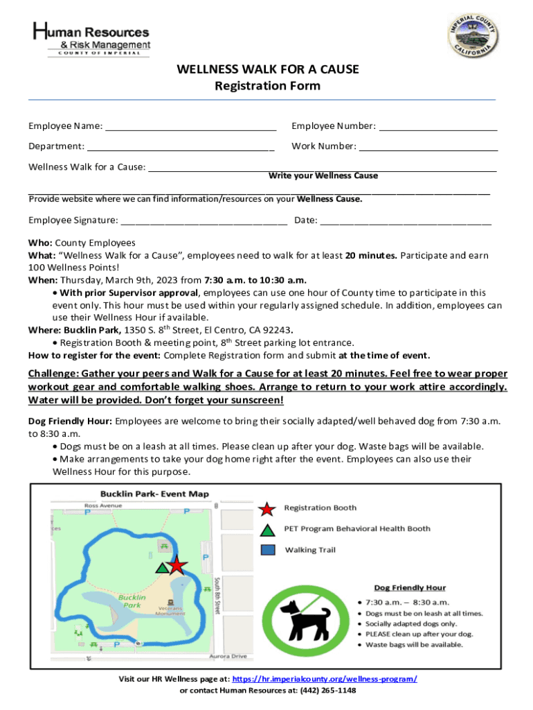 WELLNESS WALK FOR A CAUSE Registration Form Employee Name: ___Employee Number: ___Department: ___Work Number: ___Wellness Walk for a Cause: ___ Write your Wellness Cause___ Provide website where we