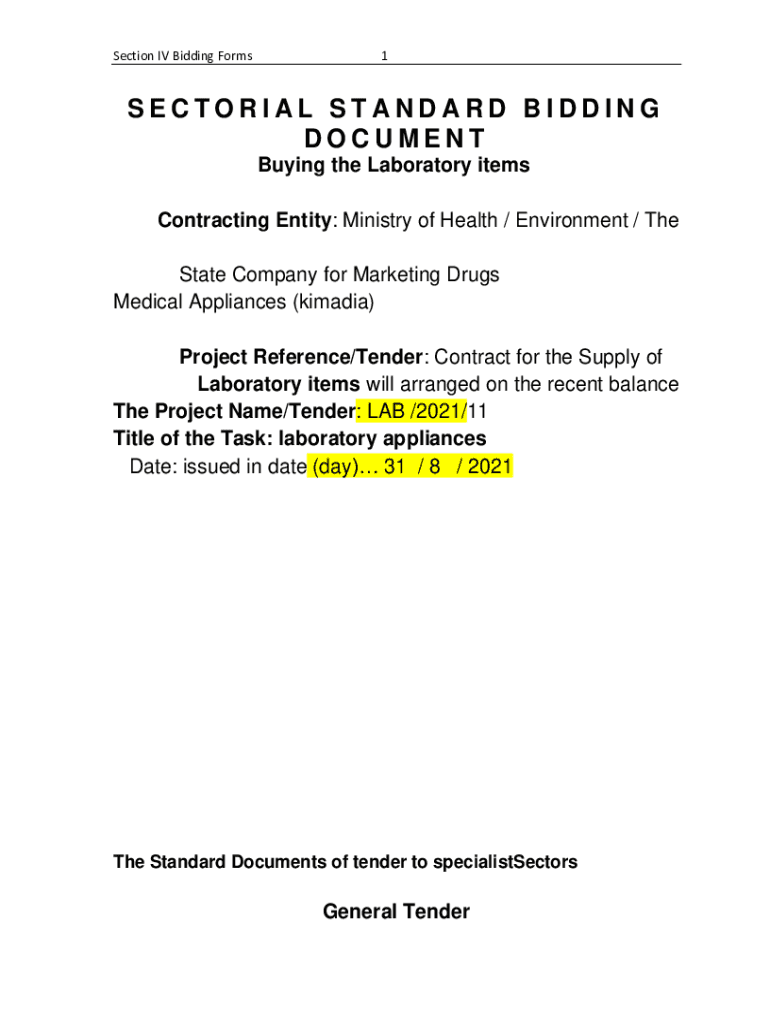 Section IV Bidding Forms1SECTORIAL STANDARD BIDDING DOCUMENT Buying the Laboratory items Contracting Entity: Ministry of Health / Environment / The State Company for Marketing Drugs Medical Appliances
