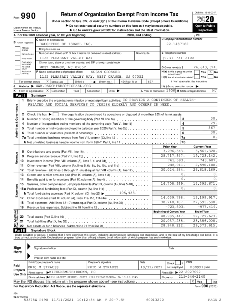 Forming to www.irs.gov/Form990 for instructions and the latest information., 20 D Employer identification numberDAUGHTERS OF ISRAEL INC.221487162Address changeling business name changeNumber and street