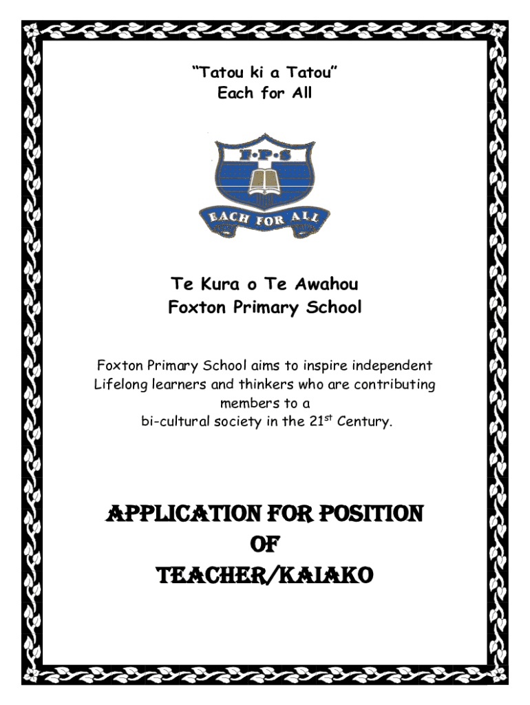 Thou I am Thou Each for Allie Kurt o Te Who Fox ton Primary School Fox ton Primary School aims to inspire independent Lifelong learners and thinkers who are contributing members to a bi cultural society