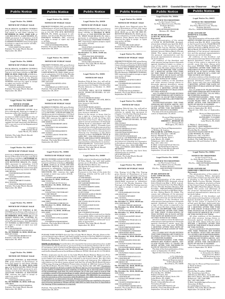 September 26, 2019Coastal/Greenacres ObserverPublic NoticePublic Notice______