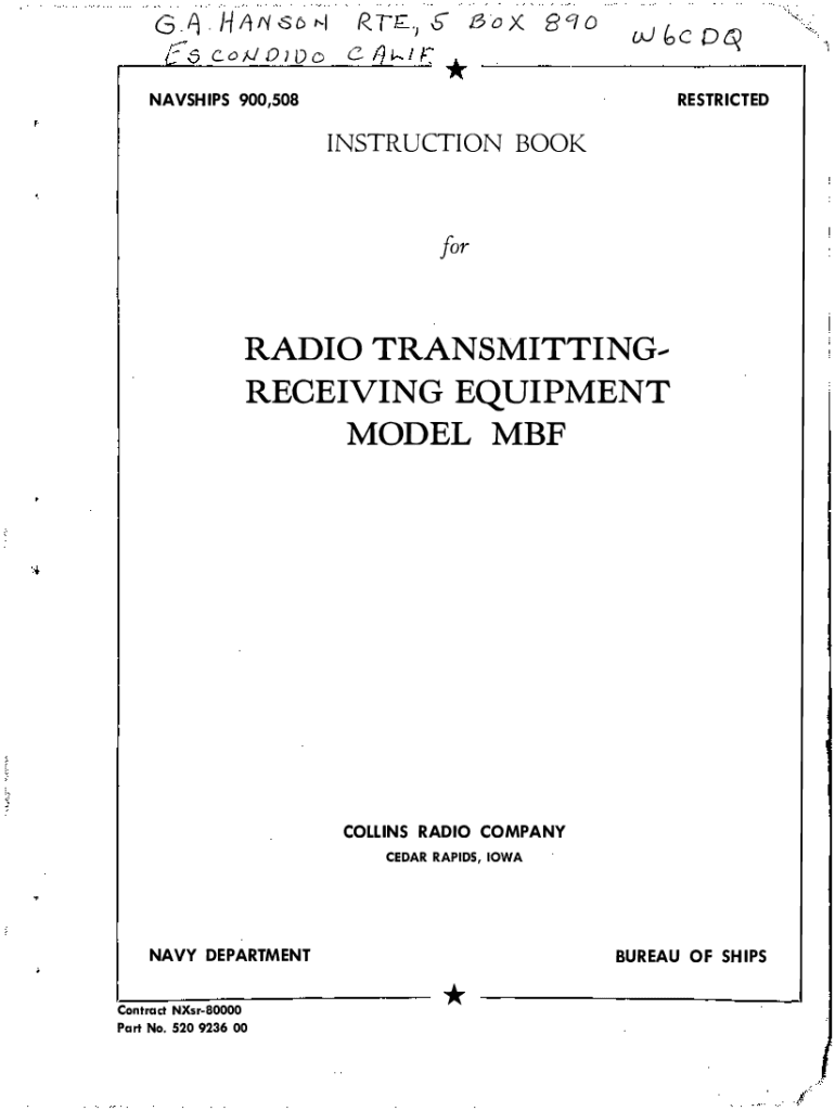Get the free NAVSHIPS 900,508 - Model MBF Transmitting-Receiving Equipment Technical Manual. NAVS...