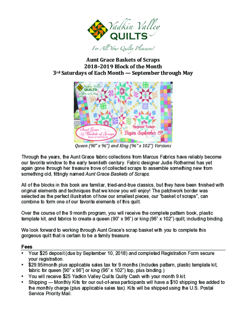 Get the free Aunt Grace Baskets of Scraps 20182019 Block of the Month ...