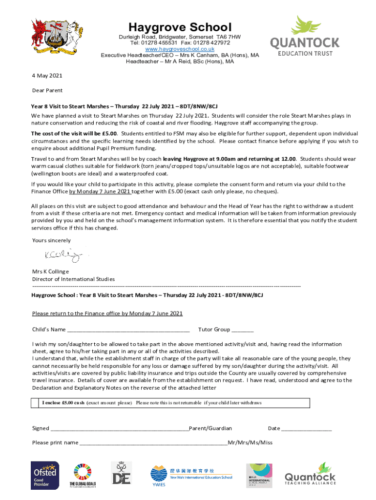 Get the free Year 8 Visit to Steart Marshes Thursday 22 July 2021 8DT/8NW/8CJ