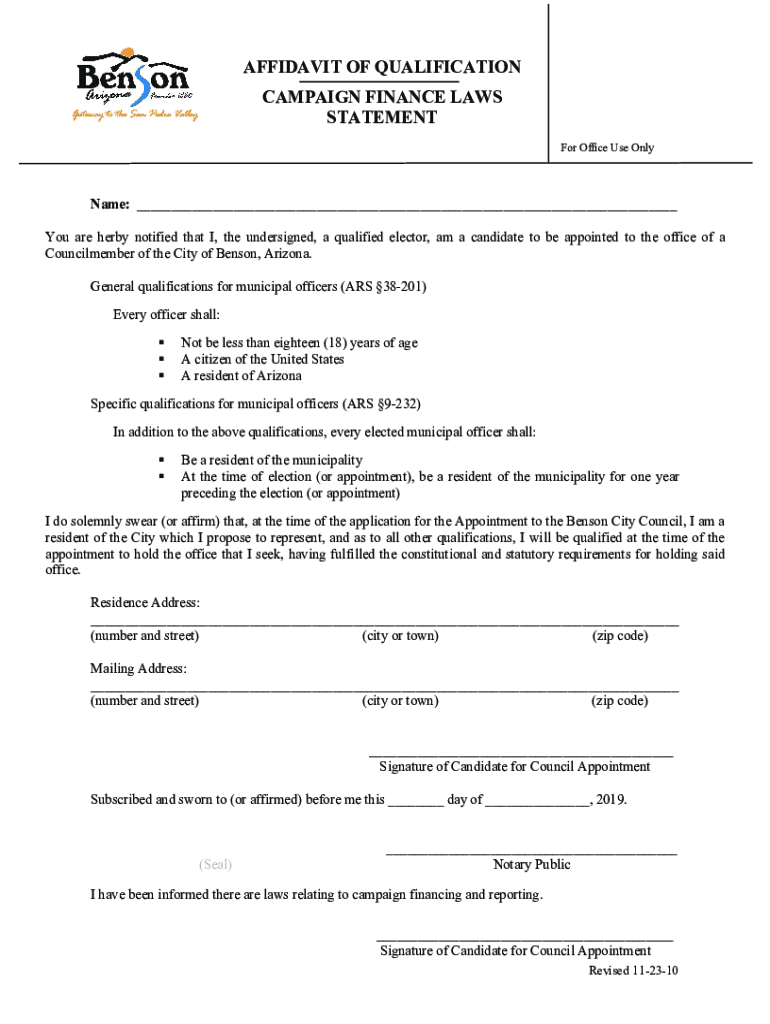 AFFIDAVIT OF QUALIFICATION