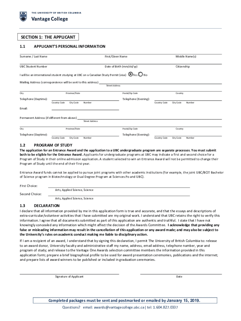 Any prospective students interested in applying to the Vantage One program need to fill out the entrance application. This program is typically for international students looking to gain academic and English language skills before pursuing a degree at a Canadian university.