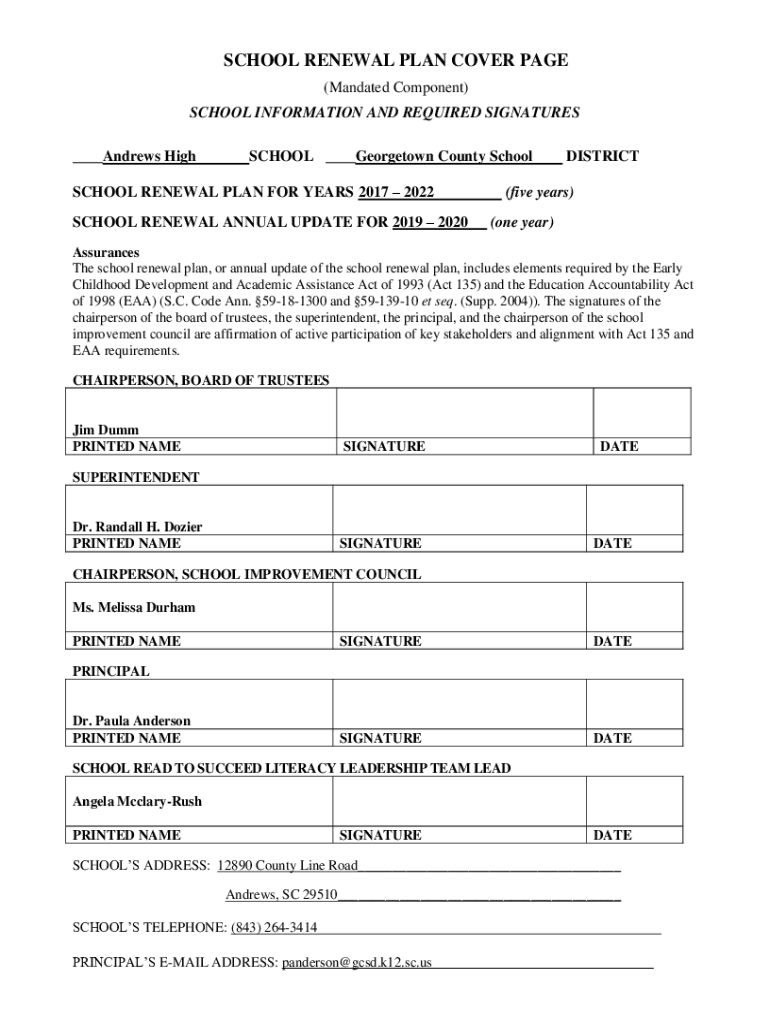 ___Andrews Homeschool ___Georgetown County SchoolSCHOOL RENEWAL PLAN FOR YEARS 2017 2022