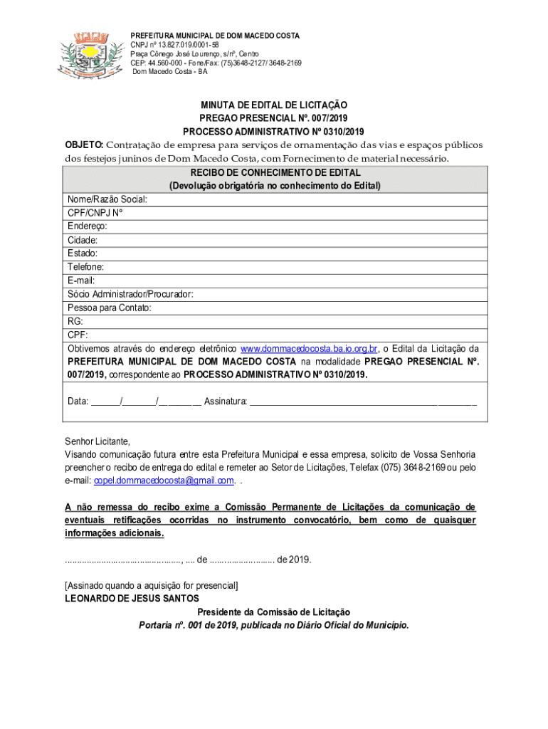 Obtenha o gratuito BA - PREFEITURA MUNICIPAL DE DOM MACEDO COSTA