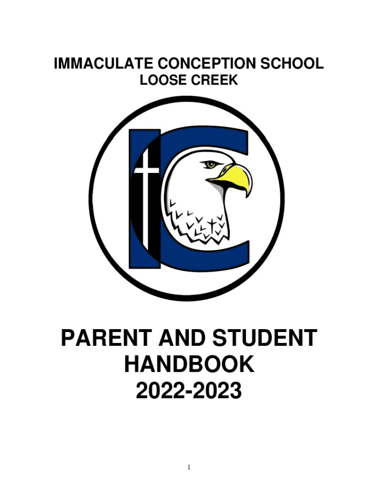IMMACULATE CONCEPTION SCHOOL LOOSE CREEKPARENT AND STUDENT HANDBOOK 202220231Table of Contents Educational Mission Statement and Philosophy.3 Community & External Operations.3 Admission Procedures.9