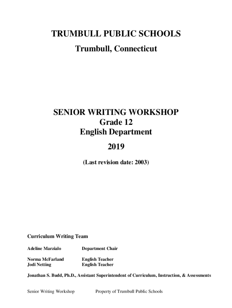 Trumbull, ConnecticutSENIOR WRITING WORKSHOP