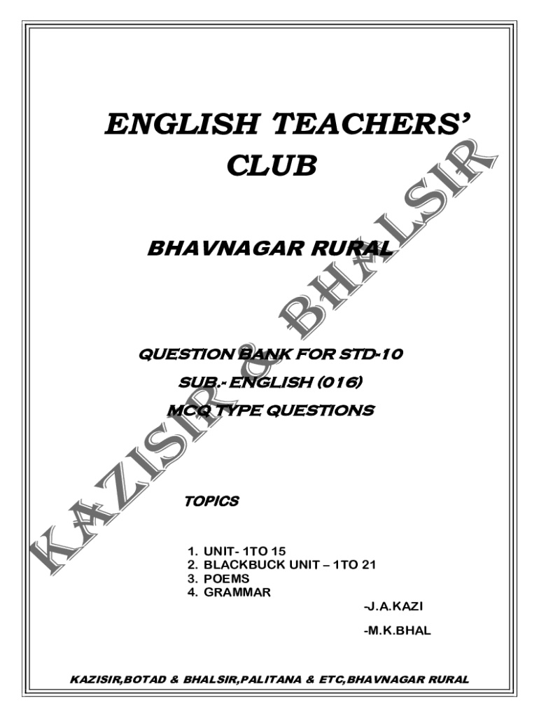BHAVNAGAR RURALQUESTION BANK FOR STD10
