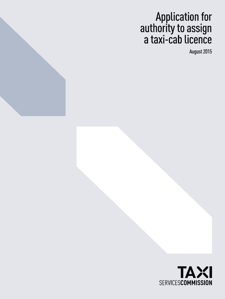 Application for authority to assign a taxi-cab license Application for authority to assign a taxi-cab license IMPORTANT NOTES ABOUT ASSIGNMENT AGREEMENTS Under section 150 of the Transport (Compliance