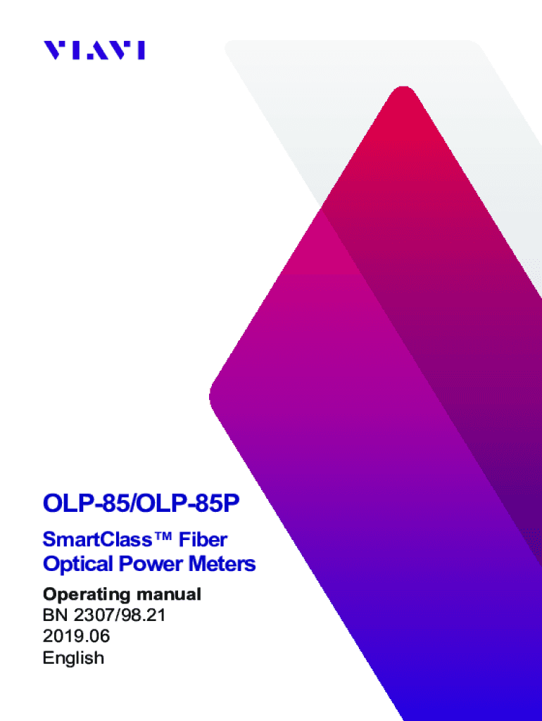 OLP85/OLP85P Smartgrass FiberOptical Power Meters Operating manual IN 2307/98.21 2019.06 EnglishPlease direct all inquiries to your local Via vi sales company. The addresses can be found at: www.viavisolutions.com/enus/contactsalesexpert