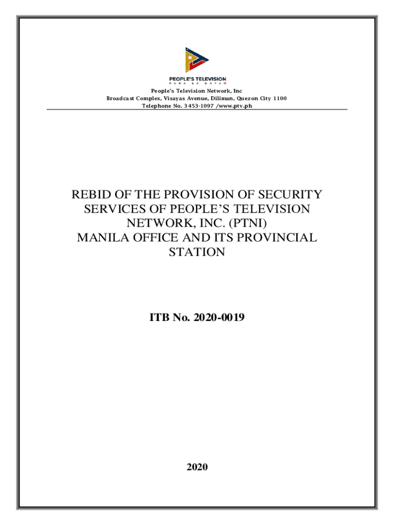 Peoples Television Network, Inc Broadcast Complex, Visayans Avenue, Dalian, Quezon City 1100 Telephone No. 34531097 /www.ptv.phREBID OF THE PROVISION OF SECURITY SERVICES OF PEOPLES TELEVISION NETWORK,