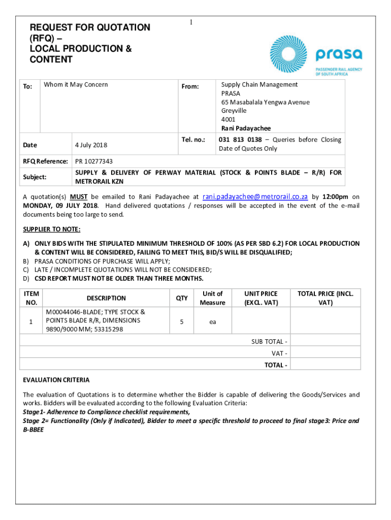 Ran PadayacheeFrom:Tel. No.:031 813 0138 Queries