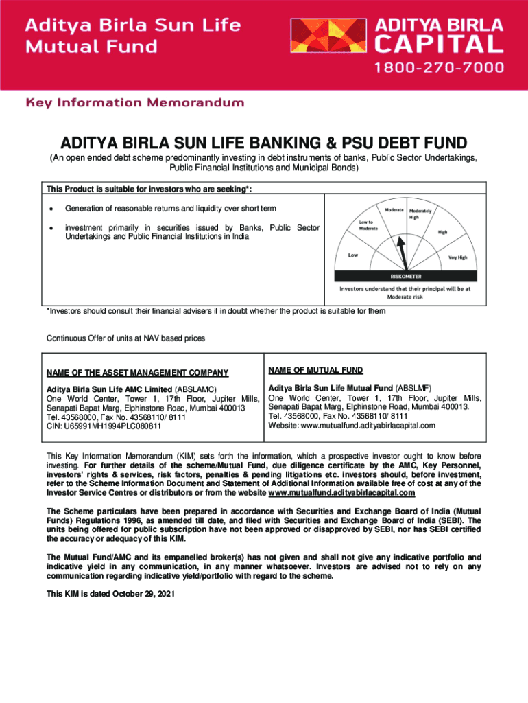 ADITYA BIR LA SUN LIFE BANKING & PSU DEBT FUND (An open-ended debt scheme predominantly investing in debt instruments of banks, Public Sector Undertakings, Public Financial Institutions and Municipal