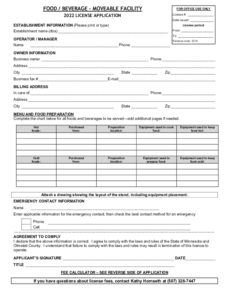 FOOD / BEVERAGE MOVEABLE FACILITATOR OFFICE USE ONLY2022 LICENSE APPLICATIONLicense #: ___
