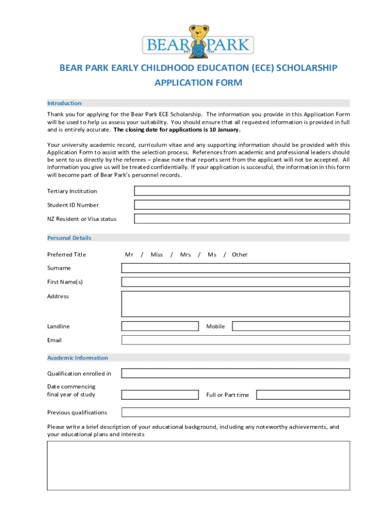Students who are interested in applying for the bear park scholarship are required to fill out the scholarship guidelines.